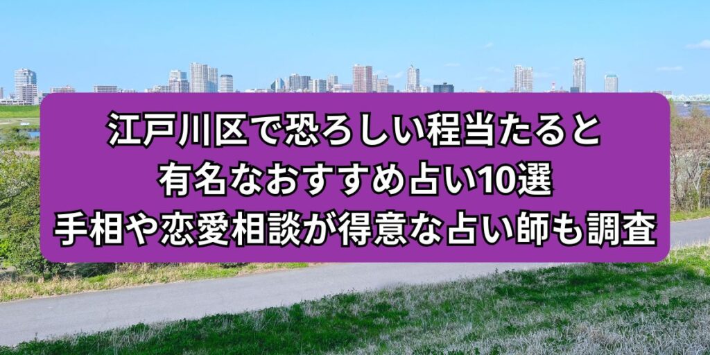 東京都江戸川区は隅田川と多摩川に囲まれ、自然豊かで住みやすい地域として有名です。区内には小中学校や福祉施設などが多く、子育てや社会復帰のケアなども充実しています。 最近では占いスポットの注目度が高く、都外に住む人の利用率も高いです。オンラ... -