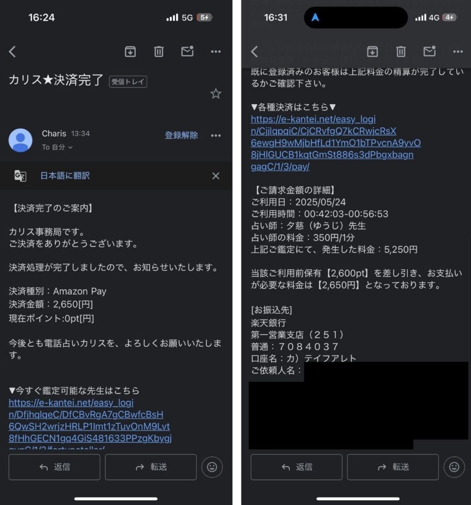 電話占いカリスの夕慈(ゆうじ)先生に相談しています。相談者は初めての利用だったため、カリスの初回無料特典を使用し、鑑定料金が値引きされています。
