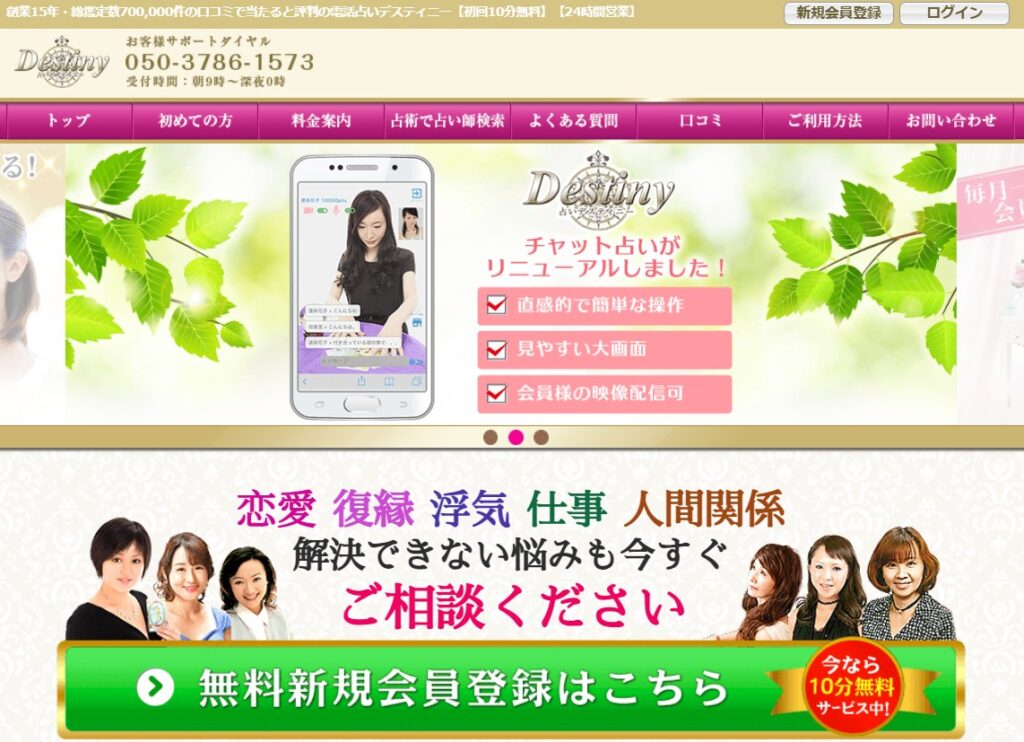 電話占いデスティニーは、自分に合う占い師をじっくり探せる電話占いサイトです。