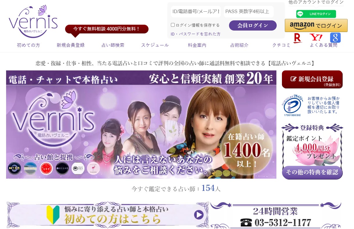 電話占いヴェルニは20年近くの運営歴があり、実力派の占い師が多く在籍する電話占いサイトです。