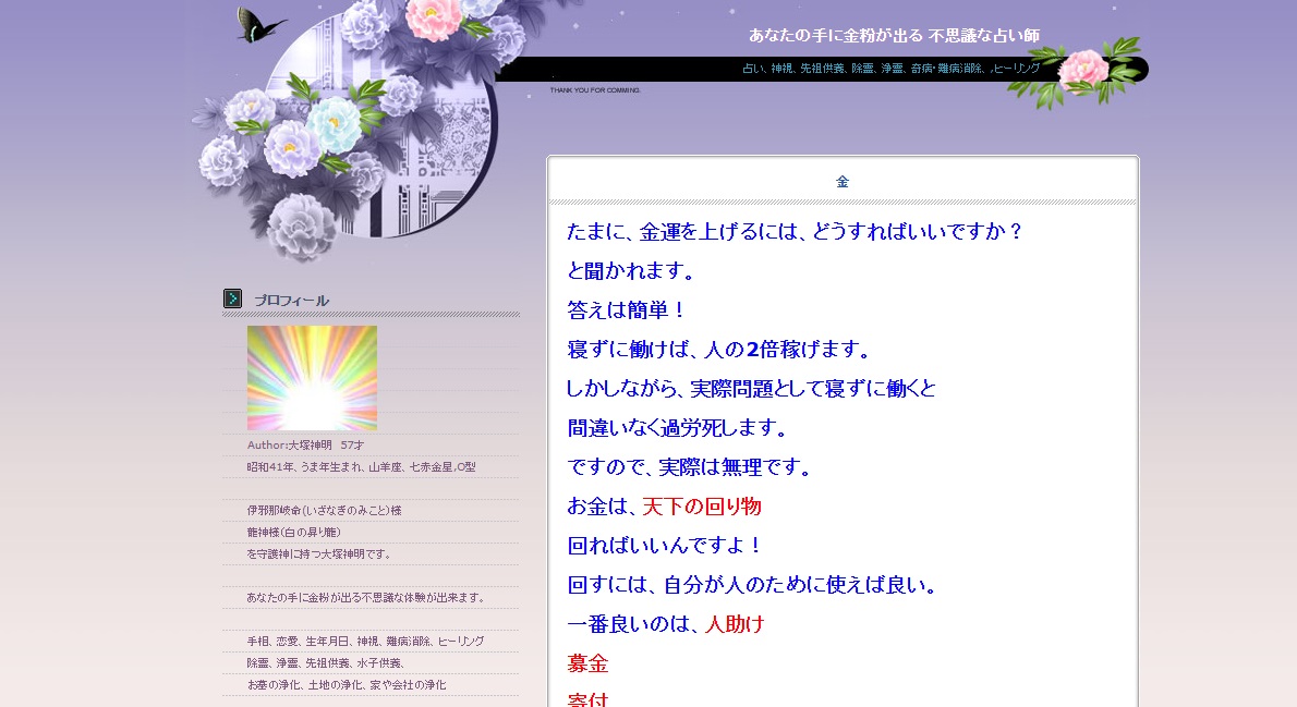 私は先生の優しさと人当たりの柔らかさはもちろん、鑑定の正確さや奥深さに魅力を感じて、いつも鑑定をお願いしています。いつもありがとうございます。引用:公式サイト