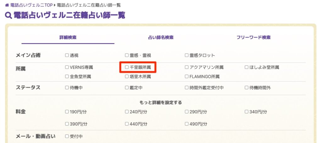 占いの館千里眼に所属する占い師たちは、さまざまな鑑定方法で多角的に占う先生がたくさん所属しているため、