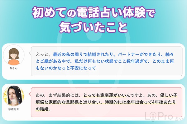 Nさん「優しい子、家庭的な旦那様と巡り会う」の言葉に安心しました。