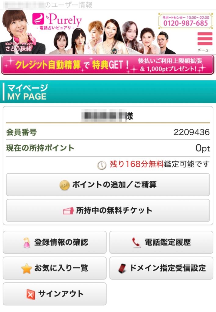 | 決済方法 | 無料通話特典により決済なし |
