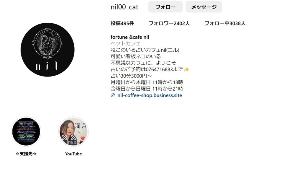 | 公式インスタグラム | https://www.instagram.com/nil00_cat/ |