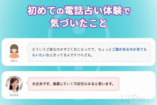私の質問の仕方が悪かったのかな?と思いましたが、個人的に同じ質問内容で他の占いの館の先生に見ていただいたことが何度かあり、その際は「これから彼とどうして行きたいと思っていますか?」「縁があり過ぎて戸惑う感じですか?」などと聞き取りをしてもらえたのですが志月先生は「ちょっと待ってくださいね!まず縁があるから出会っているというのはある。運命の人なんてたくさん居るし」と言うように、バッサリと切ってしまわれたので、少し厳しく感じました。